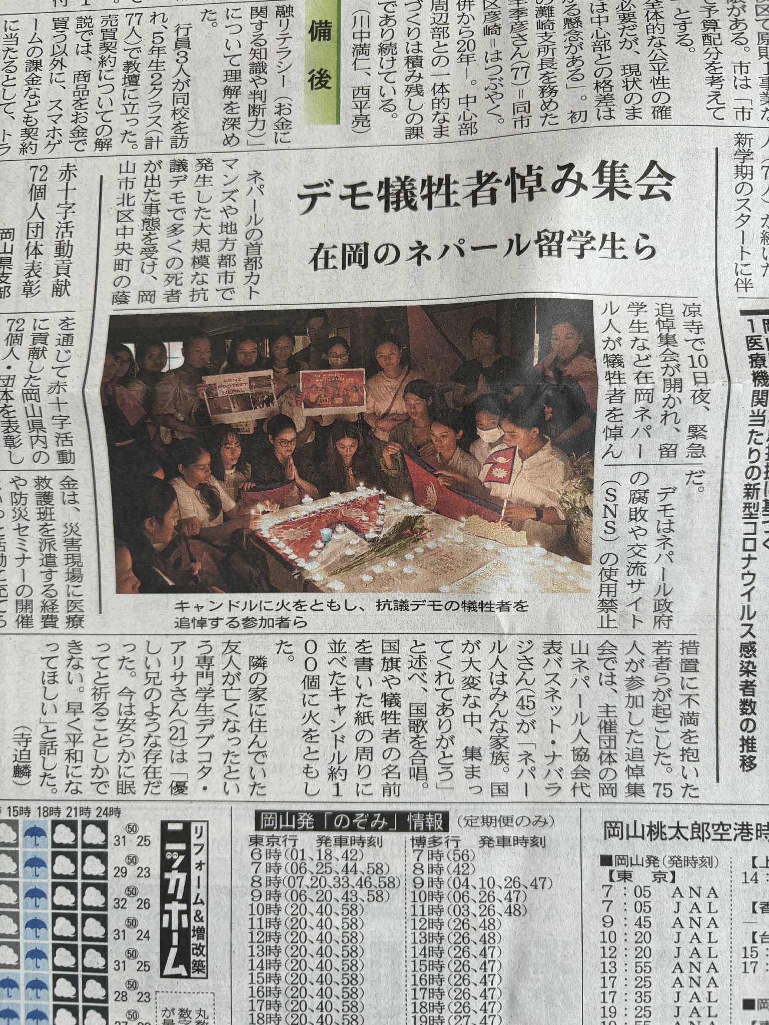 9月10日にネパールで起きた抗議デモで亡くなった方の追悼集会を行いました。主催は「岡山ネパール人協会」でダフェプロジェクトも少しばかりですがお手伝いをいたしました。